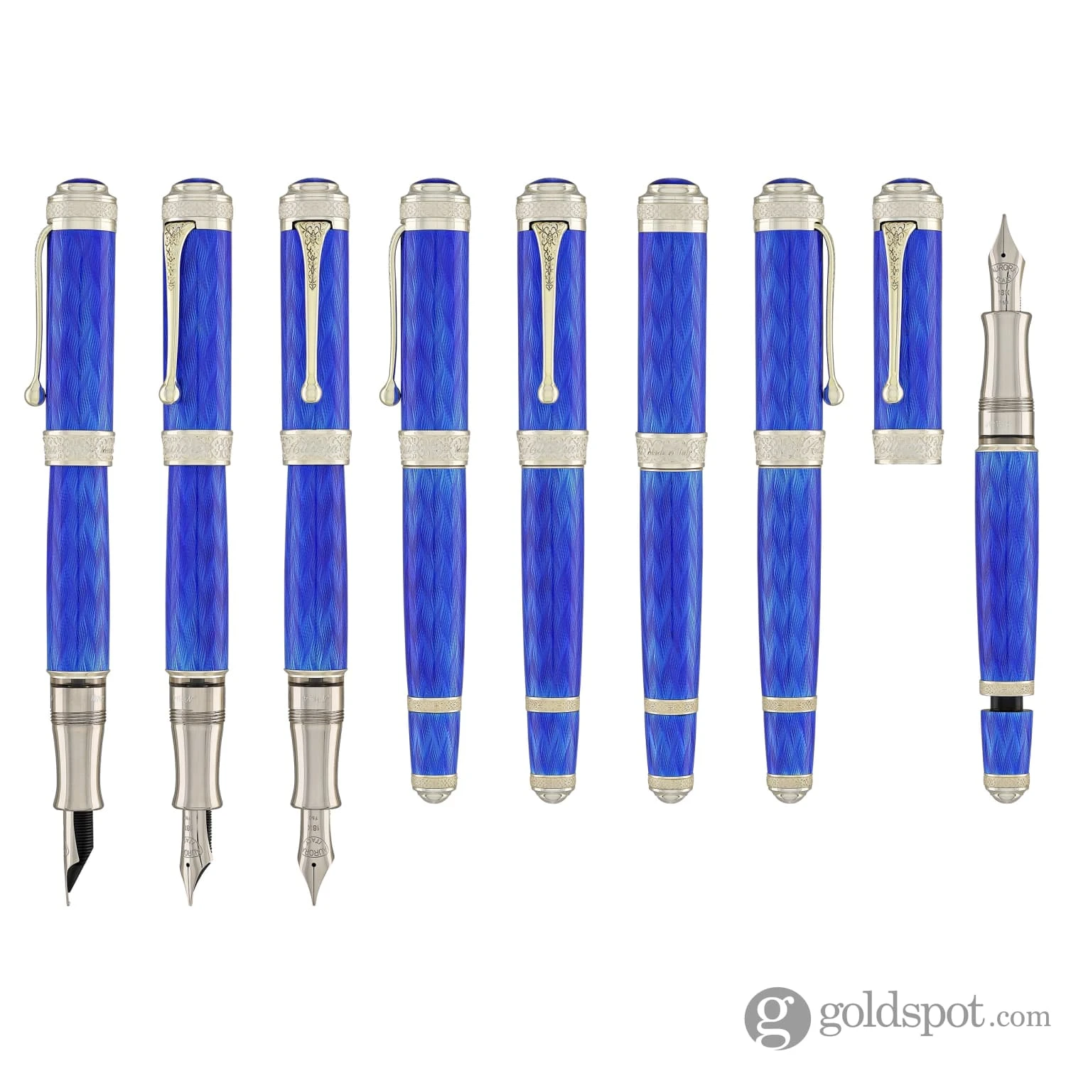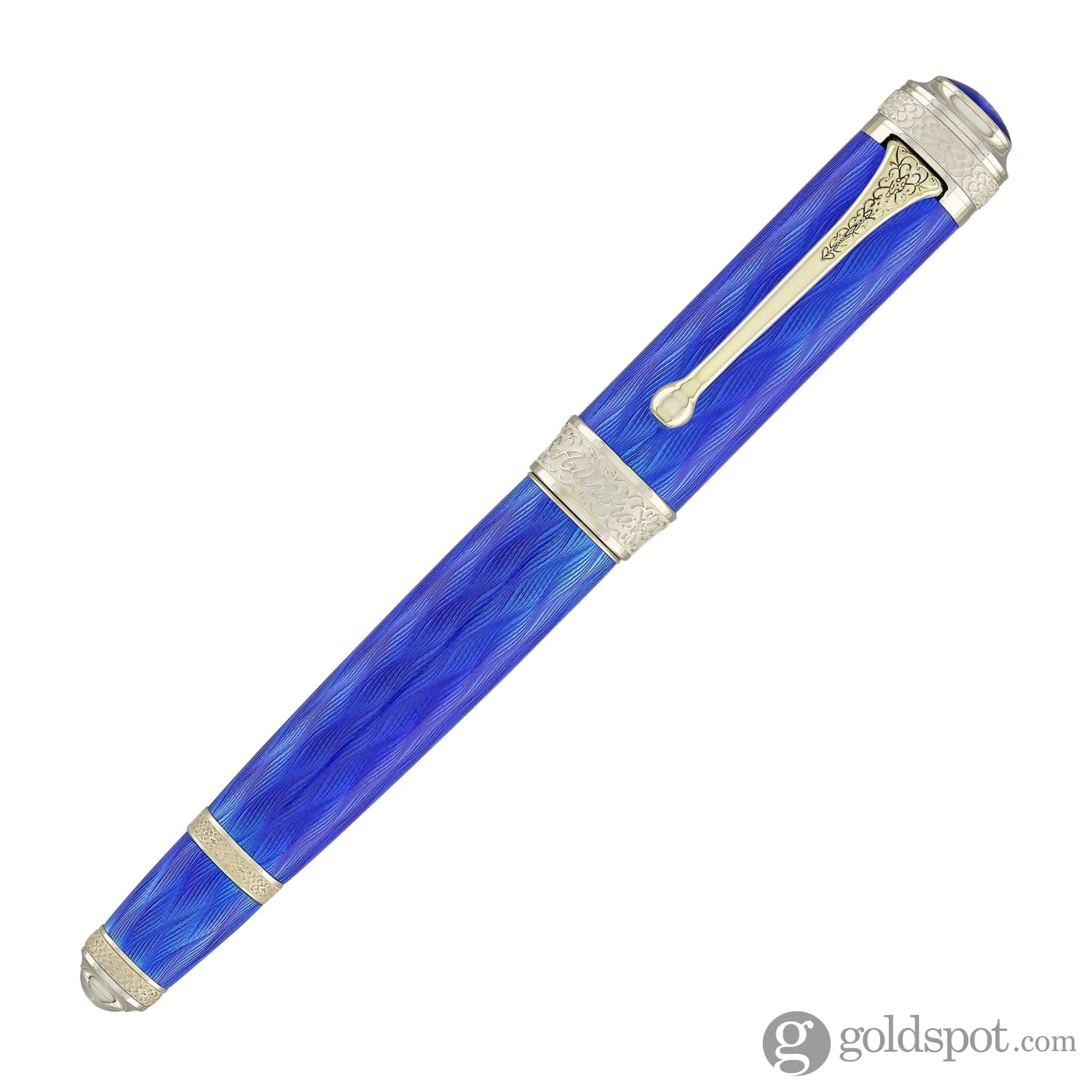 - Body Material: solid silver 925‰, “flamé” guilloché, cap and barrel in blue glazed lacquer