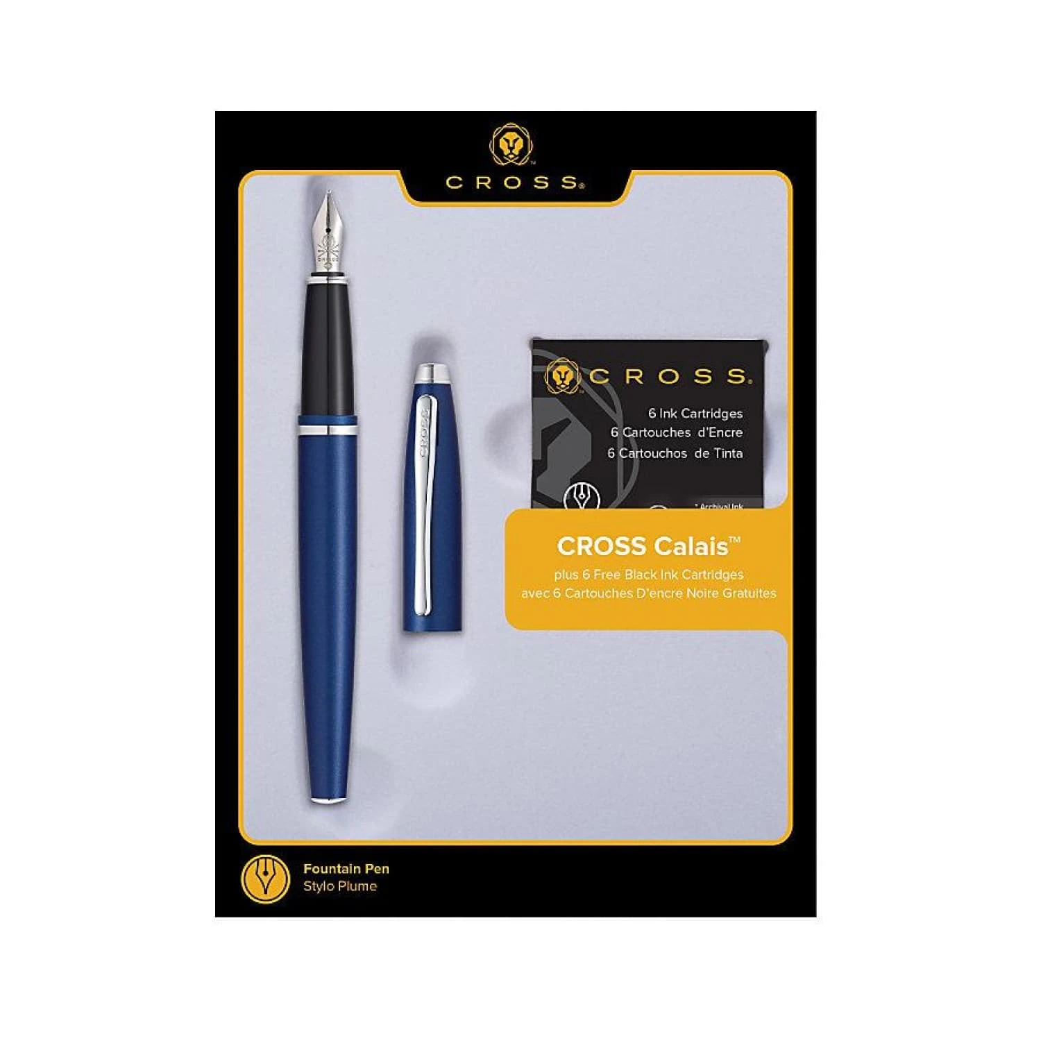 Ideal for classic looking and reasonably priced corporate gifts, the Cross Calais Fountain Pen Gift Set in Blue & Chrome with 6 Free Ink Cartridges – Medium Point is affordable and provides plenty of ink for serious writing. Lightweight, sleek, with chrome accents and a bold profile, it brings a crisp, clean look to the table every time. The matte blue lacquer finish is complemented with chrome trims and a stainless steel nib.