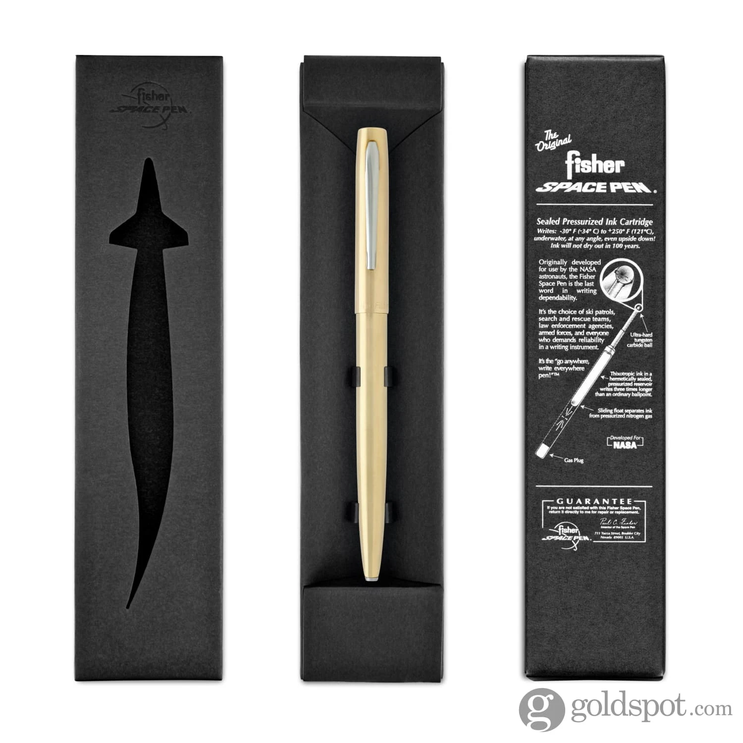 The M4 Cap-O-Matic space pen has been available for many years in a wide variety of colors & finishes, but this year for the first time ever it will be available in its most basic state – in the raw! the new #m4-raw Cap-O-Matic space pen in Raw Brass with chrome accents features a stylishly Rustic appearance, and each will develop its own patina pattern over time as well, making your #m4-raw more and more unique to you each & every time you use it. Containing a Fisher Space Pen pressurized ink refill cartridge, the #m4-raw will write upside down – at any angle, under water, through grease, extreme temperatures (-30 to +250 degrees F), on almost any surface, three times longer than the average pen, and of course in the gravity free vacuum of space, and all are lifetime guaranteed for quality against all manufacturing defects – American technology.