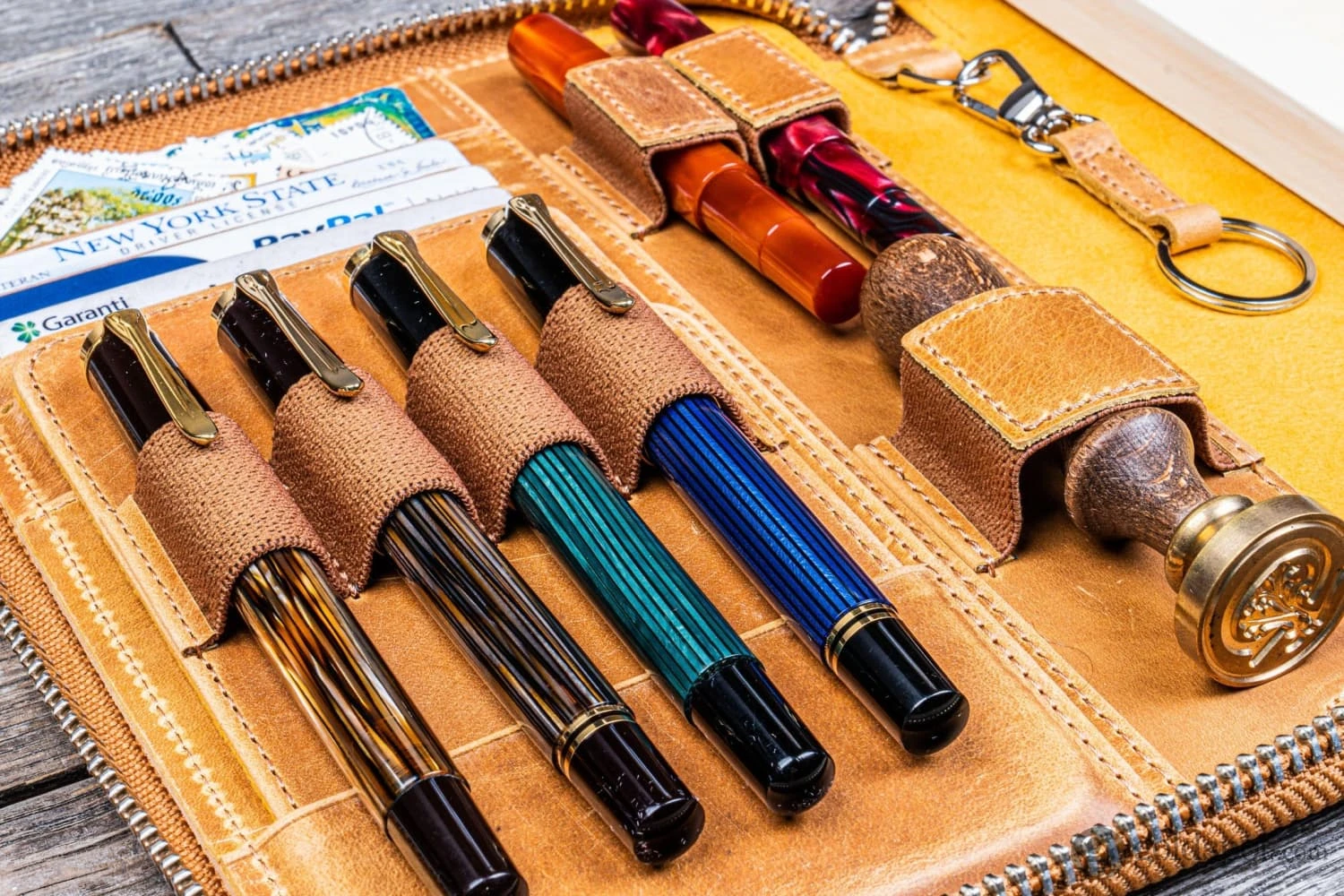 Save yourself the hassle of digging around your bag by keeping your valuables safe and secure in one place. Our handmade Leather Zippered A5 Notebook Folio is the perfect way to store your everyday essentials for work, study or personal use.The distressed brown color shows under-tones of tan, mocha and hickory. As the suede feeling leather ages, it softens quicker than regular leather. It has 4 credit card holders and a long pocket that keep your passport or your iPhone 6 / 7 / 8 . Under left side there is sleeve for storing your iPad device. This beautiful folio has removable 4 slots pen holder ,extra 2 pen slots and a slot for charger, earphones or cable. And a removable key chain in the middle of the cover. Pens and accessories are not included.