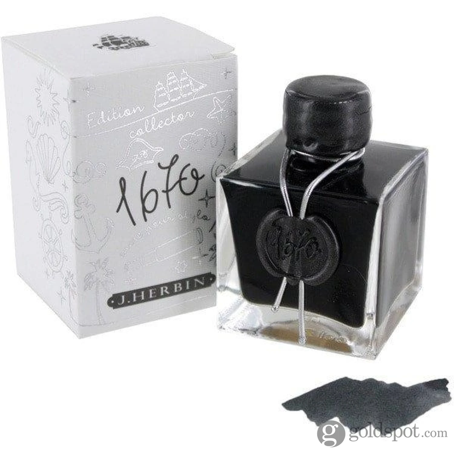 This set of J. Herbin 1670 Anniversary Ink includes three colors: Rouge Hematite, Ocean Blue and Stormy Grey. Great for fountain pens and most writing instruments, these inks are inspired by the rich life and adventures of J. Herbin, a French sailor of the 17th century who brought formulas for sealing wax and ink back to Paris. Each ink includes 50ml of rich color infused with gold or silver flecks and comes in a solid glass bottle that has been hand dipped with a wax seal cap. Makes the perfect gift for writers and calligraphers.