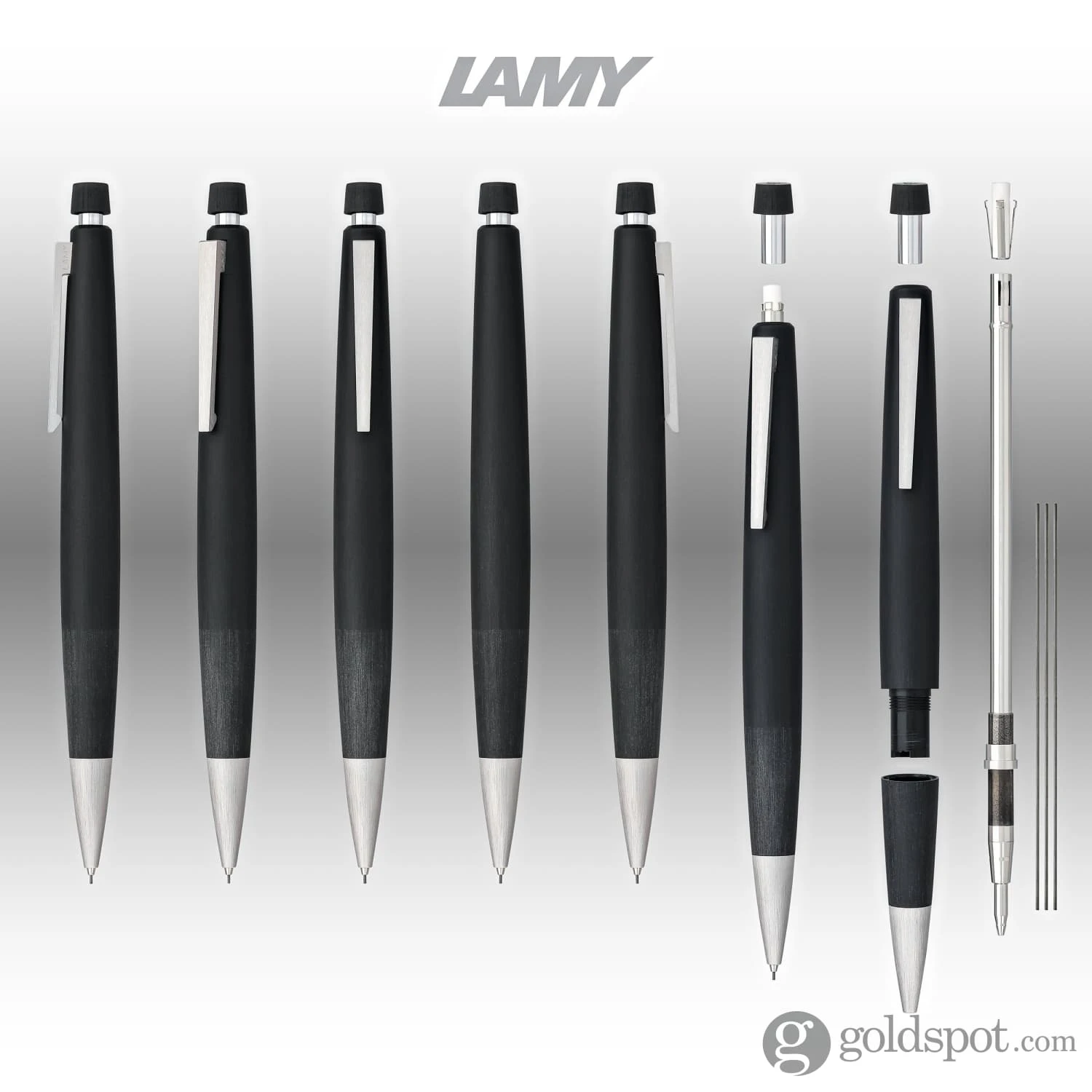 The Lamy 2000 Series Pencil is made from a combination material of fibreglass-reinforced Makrolon and stainless steel with a brushed effect and has a unique spring-loaded clip in stainless steel. This pencil has a built-in eraser and is available in two sizes for use of either 0.5mm or 0.7mm leads.