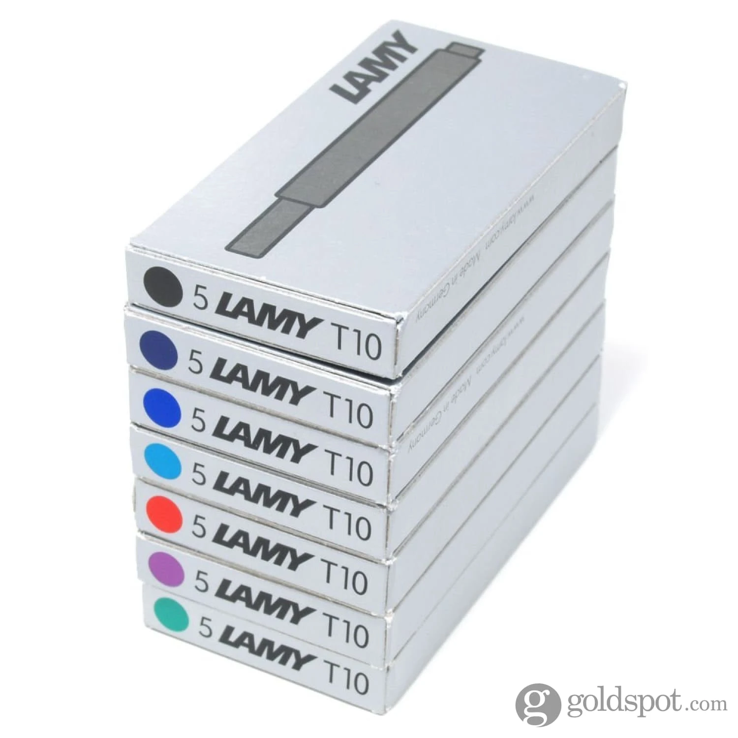 Refill your favorite fountain pen with this long-lasting ink cartridge set. Sold as a package of five cartridges, this convenient set comes in six different color options. Recommended for use with Lamy Fountain Pens for the best quality results. Come in 6 different color options: Blue, blue/black, green, violet, red, turquoise.