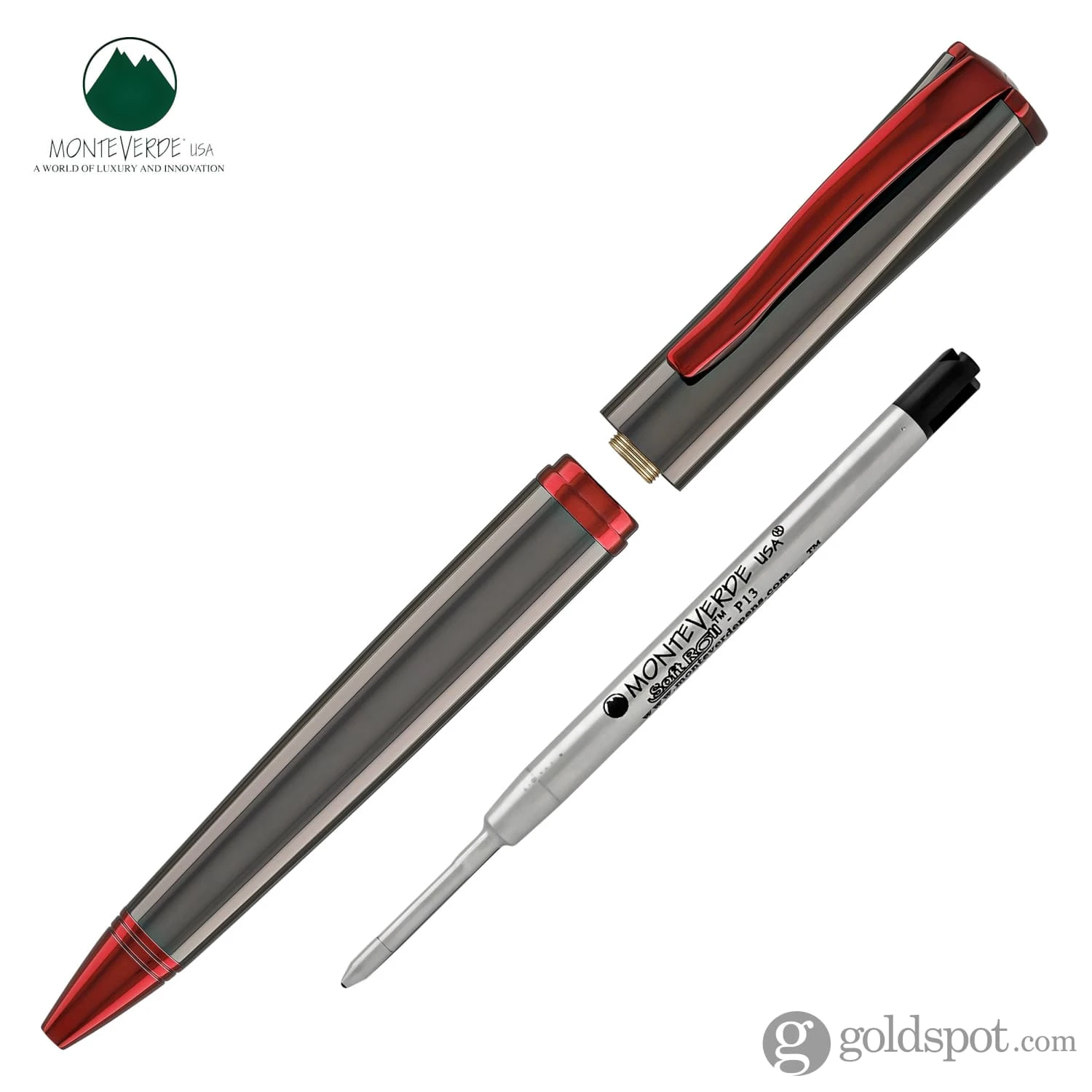 Monteverde Impressa Ballpoint Pen – Gunmetal w/ Red Trim Details: