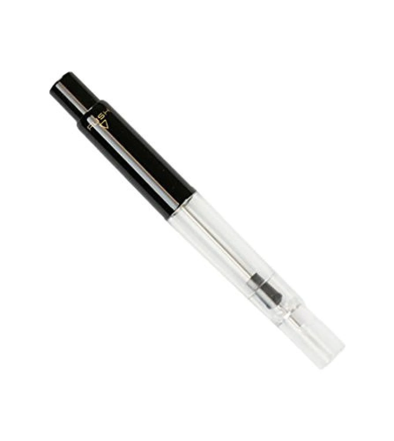 This Namiki / Pilot converter is a push-button, plunger-vacuum style, piston converter for Namiki/Pilot fountain pens. It features a black cap and is approximately 3 inches long. Manufacturer part number 69901 (CON-70). Made in Japan.