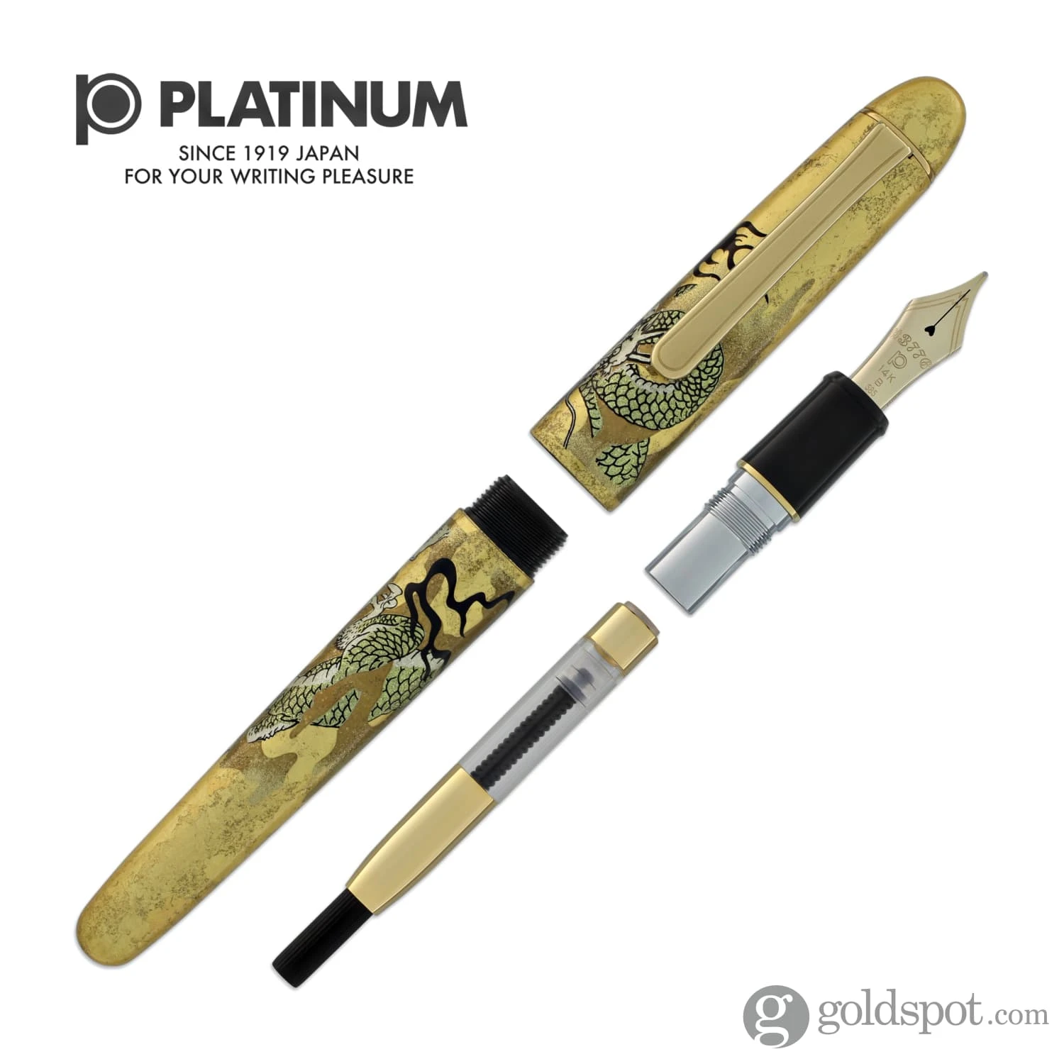 Platinum Kanazawa-haku Fountain Pen in Ascending Dragon – 14K Gold Features: