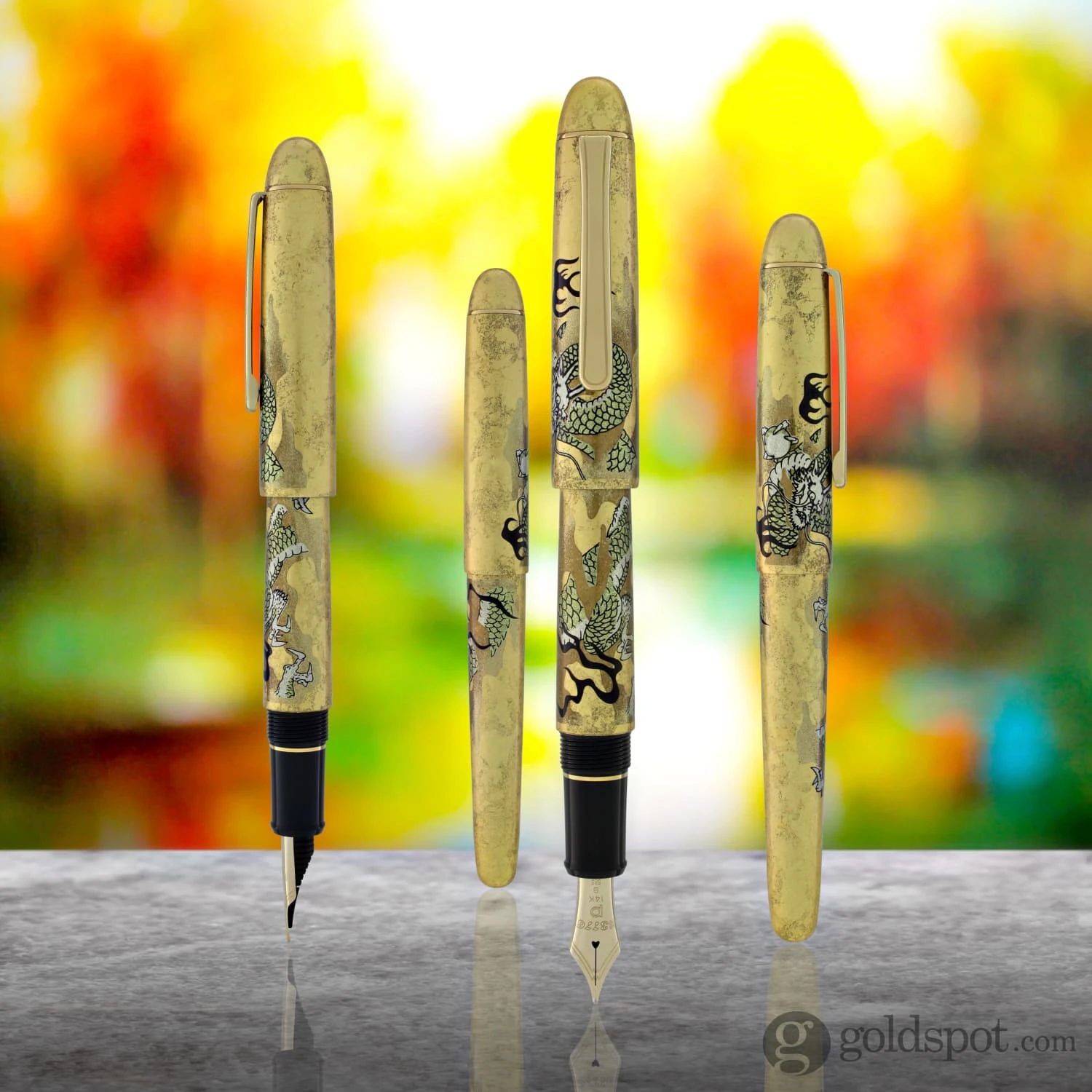 The second Kanazawa-haku (gold leaf) fountain pen, “Ascending Dragon” painted by Sotatsu Tawaraya as a motif. He applied the GÇ£Kanazawa-haku Momi ChirashiGÇ¥ technique meticulously on each of the fountain pens. A traditional technique that after a gold leaf is extended to a thin sheet, it is torn into smaller pieces. Then they are pasted to the barrel of the pen to give it depth and the light reflects a glow to the motion of the dragon.The innovative cap contains a unique GÇ£Slip & SealGÇ¥ mechanism that prevents ink from drying out in the pen. The same design as the #3776 Century series that allows those who only use their pen a couple times a year to pick it up as though it has fresh new ink.