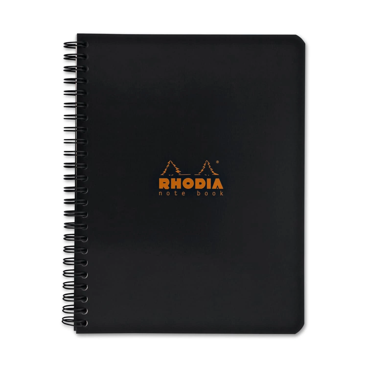 This Rhodia Side Wirebound Notepad features 80g smooth extra white Rhodia paper with waterproof orange or black coated cover. Double wire-binding for strength and no snag. Stiff cardboard backing provides support for writing and sketching on the go. Fountain pen Friendly!