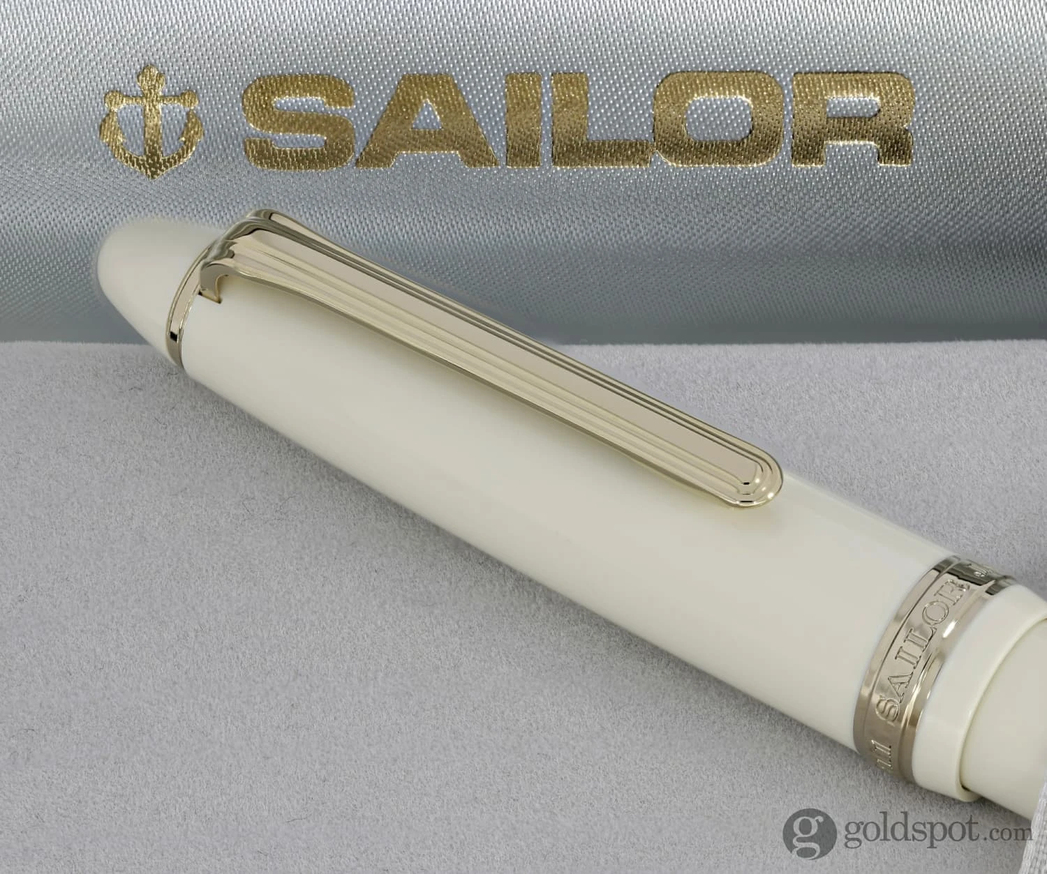 A beloved Japanese import finally arrives in the US! The ivory resin and gold trim style is extremely popular in Japan and is held in a class all of its own. The standard 1911 has a tapered profile that is an excellent fit in the hands of most writers. This pen fills by Sailor ballpoint ink cartridge (included) and is packaged in a Sailor gift box.