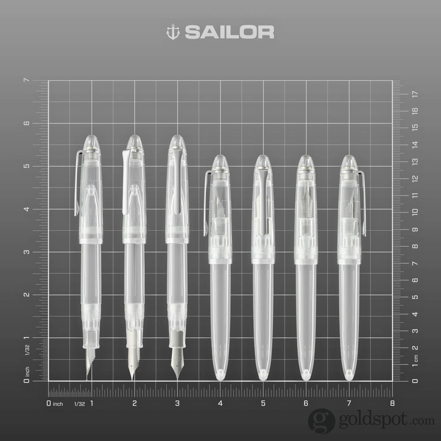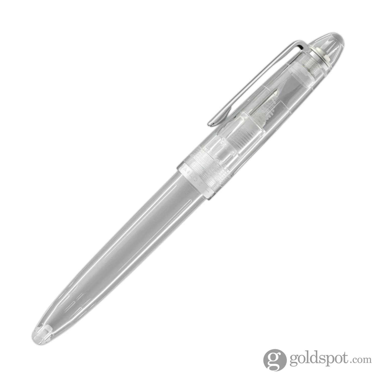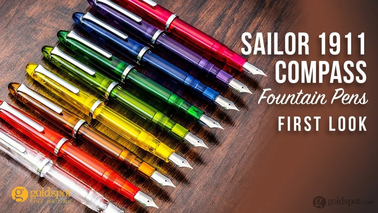 The Sailor Compass 1911 fountain pen with it’s stainless steel, medium-fine nib, silver trim, and a colorful transparent body. Each one of the nine different color pens comes packaged in a gift box with a color-matched converter and two proprietary Sailor black ink cartridges.
