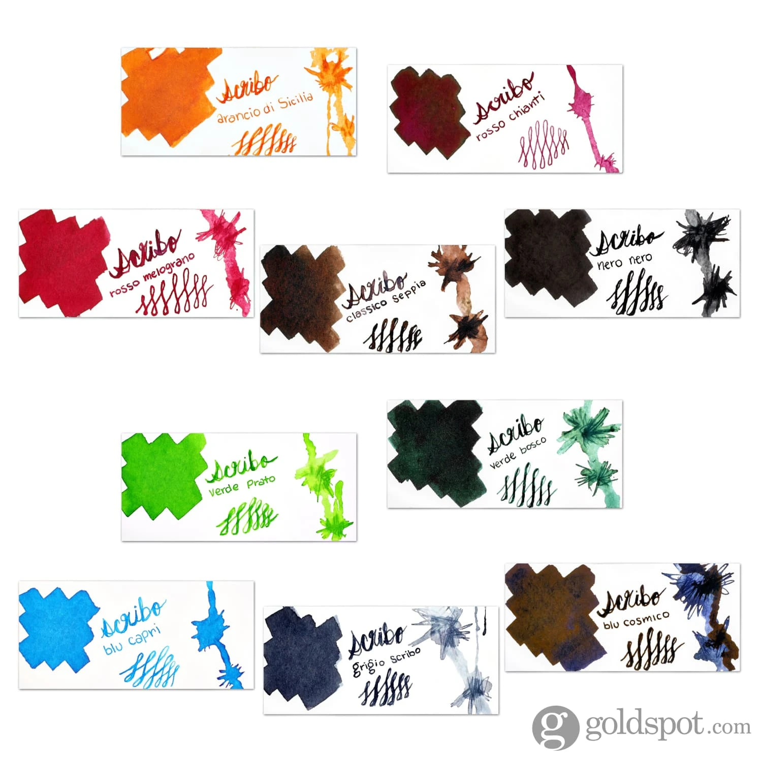 Create the most original and genuine inspirations with SCRIBO’s range of fountain pen inks. These water-based inks have been precisely made to offer the best writing experience with their extra flexible nibs. The nuances are made by plain water-based colors and they are presented in 90 ml (3 fl. OZ.) square and stackable bottles for an easy and prolonged use.