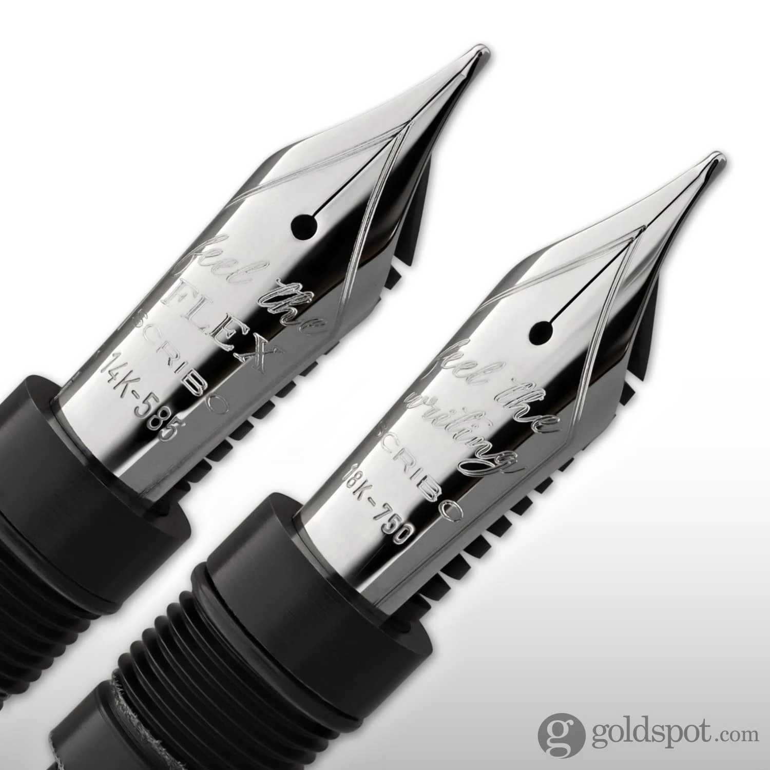 The historic OMAS nib is the key component of the SCRIBO writing instrument. Using the same tooling and manufacturing methods once employed by the OMAS pen company, the FEEL is fitted with a 18kt gold nib and ebonite feeder. The design enhances the always ready, generous, soft and precise writing experience.
