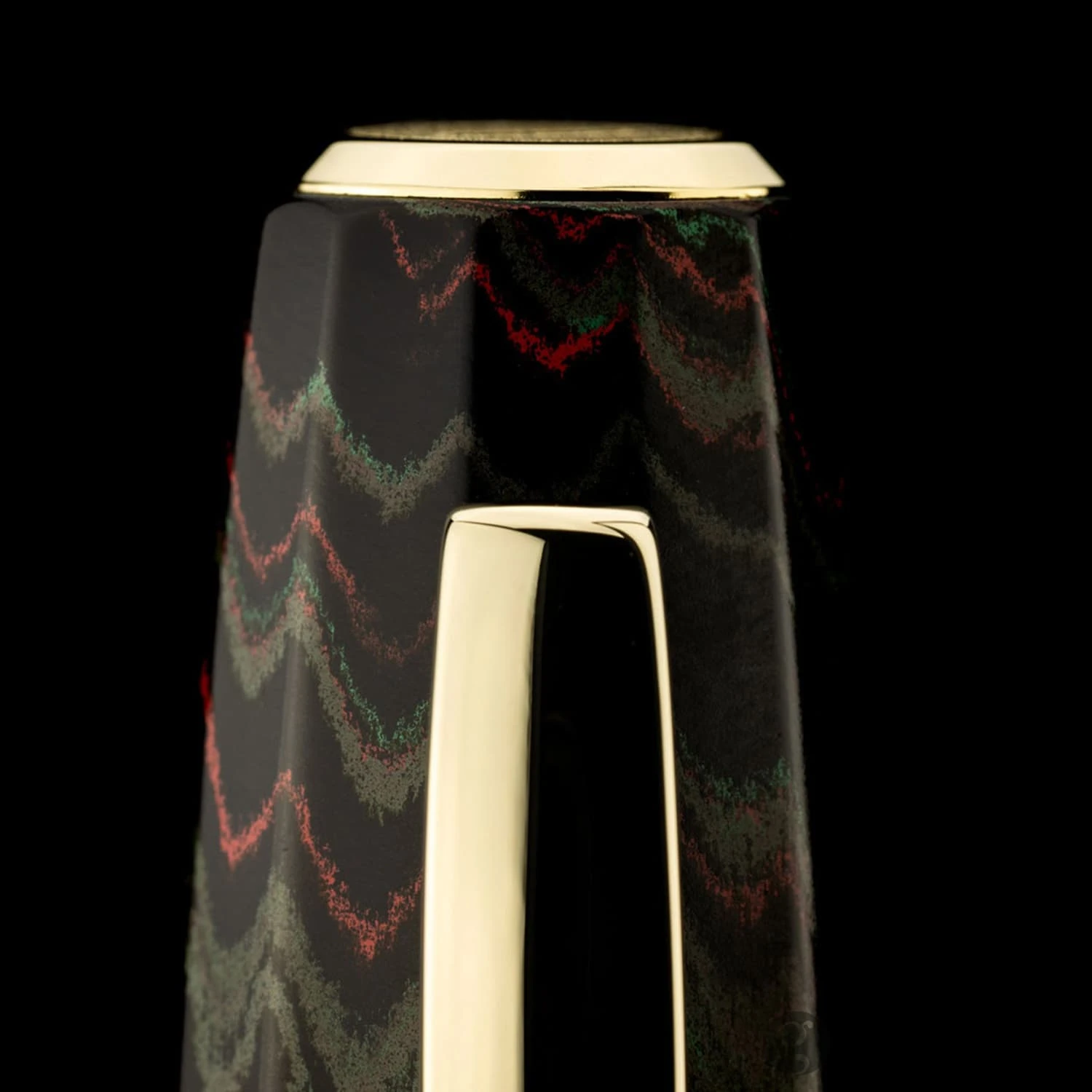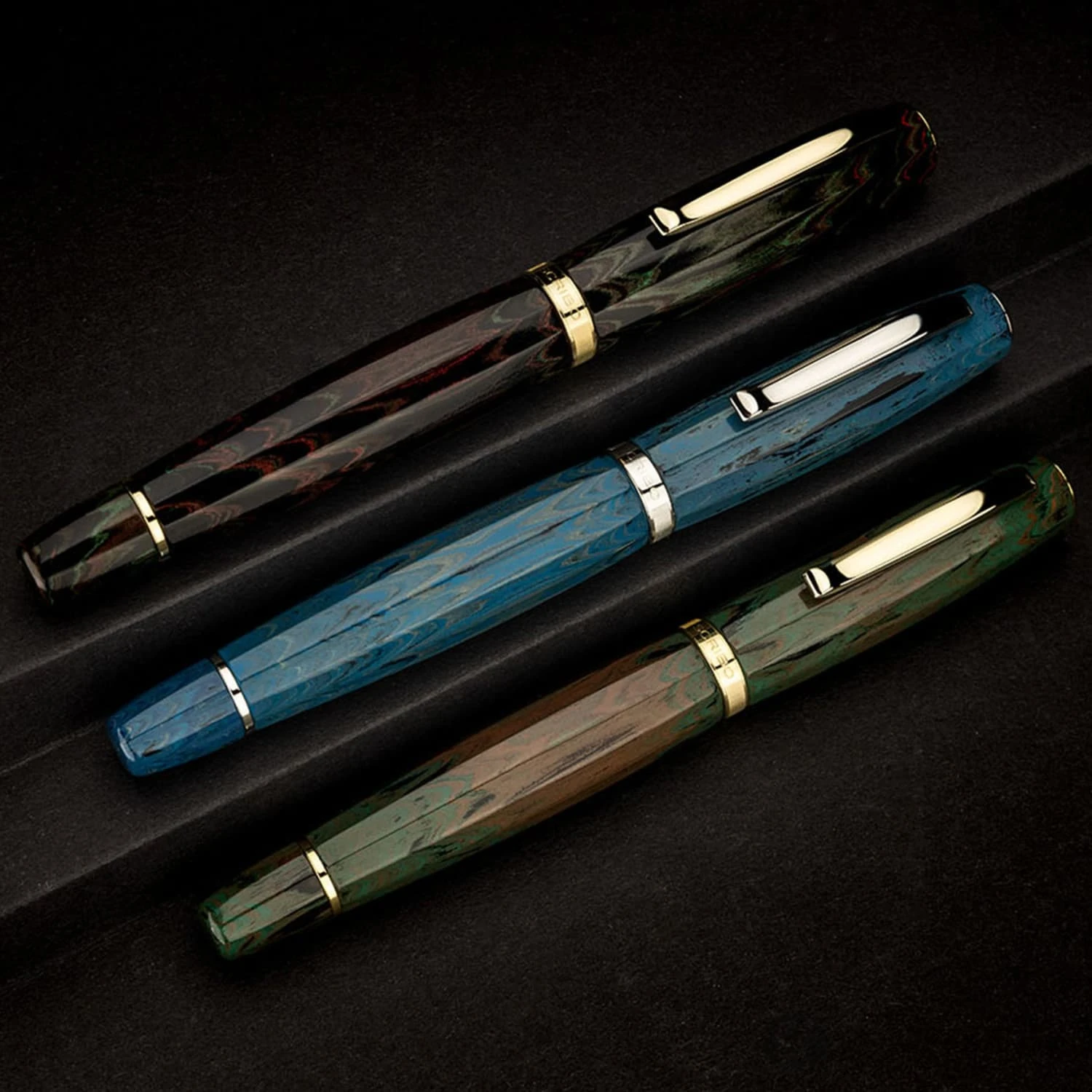 To reflect the free and unspoiled beach of pebbles, gravel, and rock, Scribo crafted the Sassi Neri ebonite pen design – a black ebonite with multicolor ripples and swirls similar to the patterns found on rocks smoothed by the sea.
