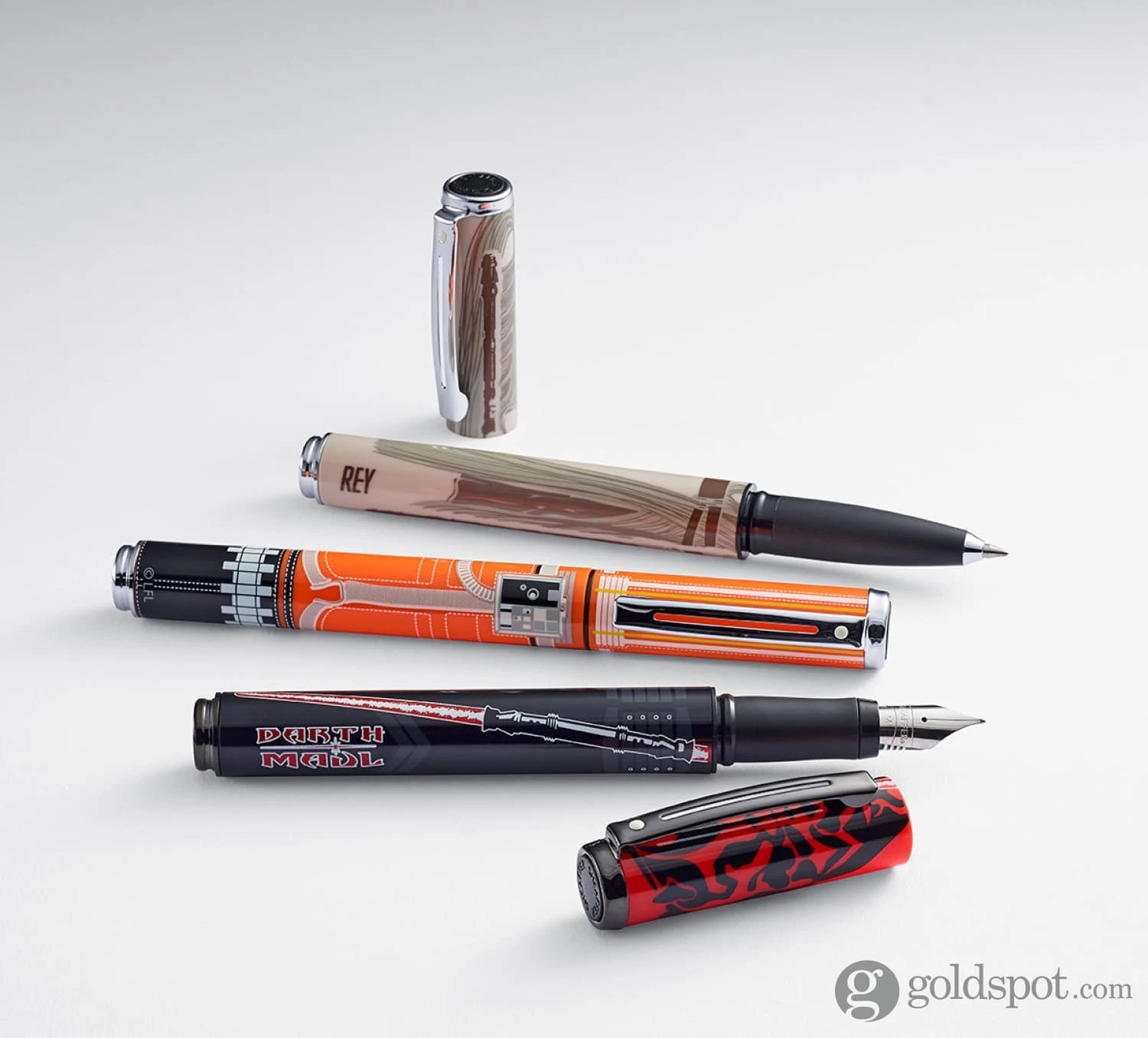 Inspired by the Star Wars galaxy, the Sheaffer Pop pens feature a bold, modern silhouette emblazoned with nine authentic character design details themed to Yoda™, Darth Vader™, R2-D2™, BB-8™, Death Star™, Rey™, Luke Skywalker™, Darth Maul™, and new fan favorite, Kylo Ren™.