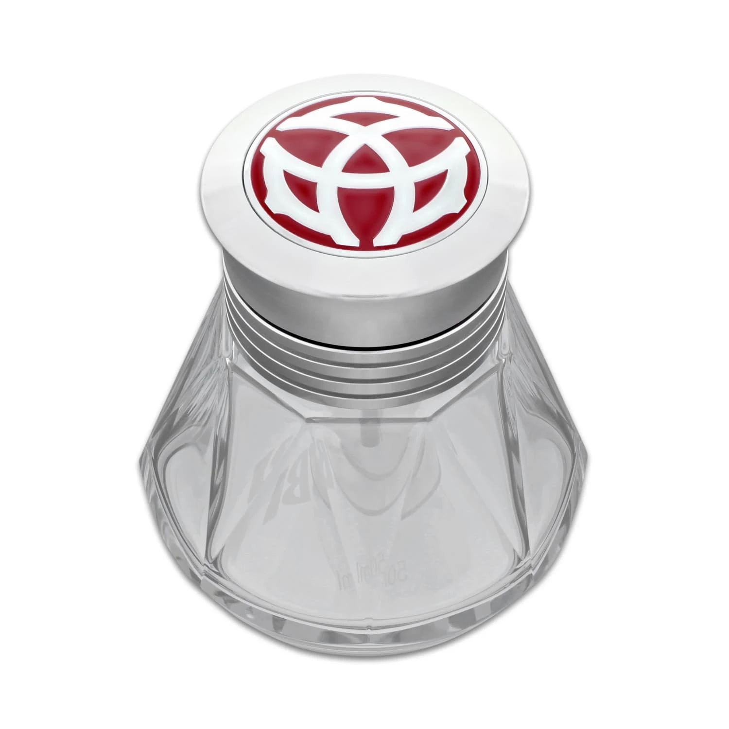 The faceted shape of the 50ml glass ink bottle gives your ink color a beautiful home to show its brilliance. Ink is not included.