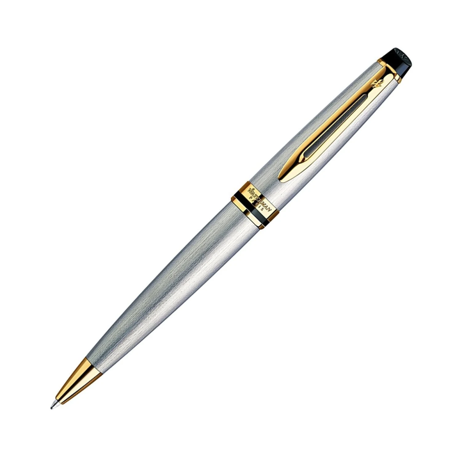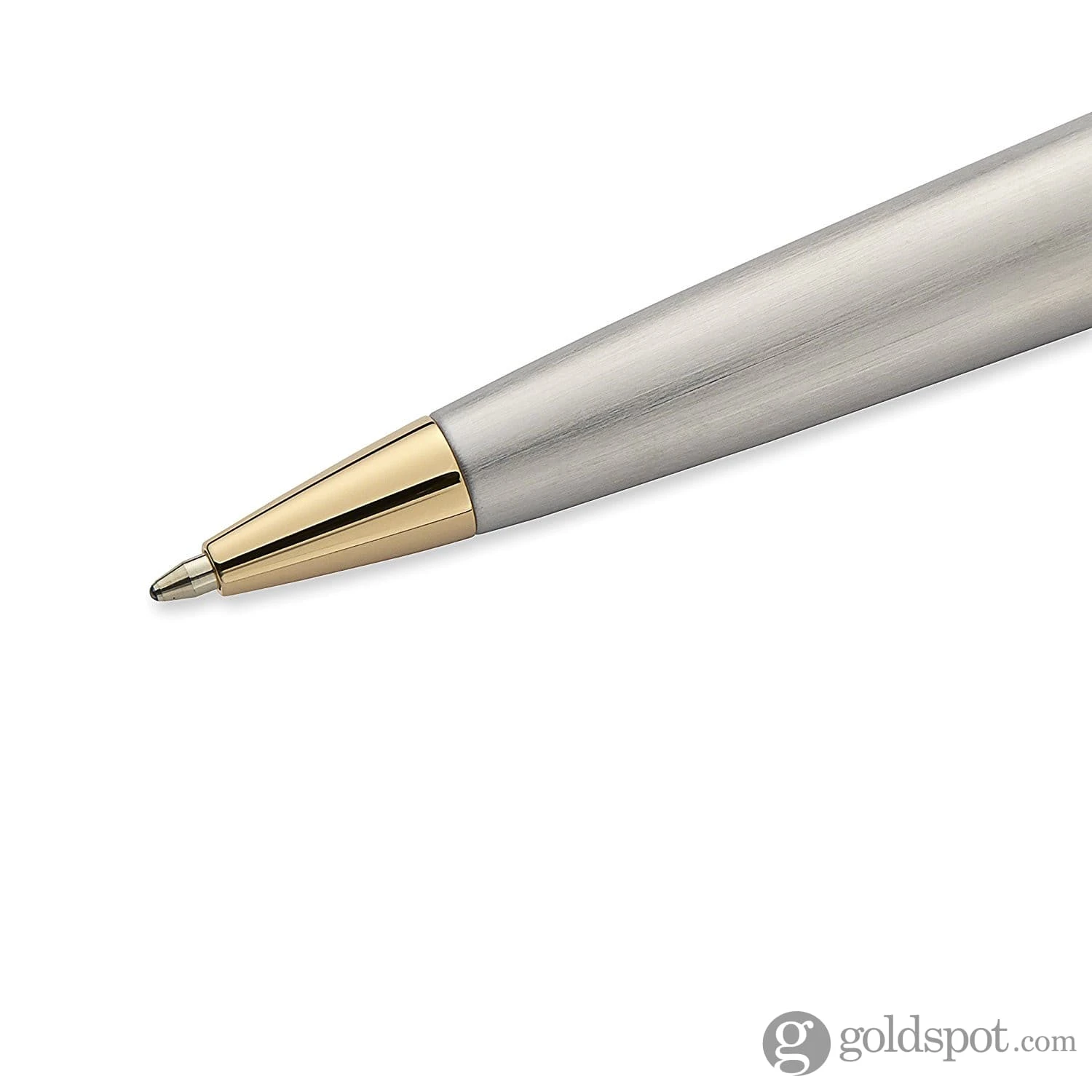 - As contemporary as it is timeless, this pen is beautifully displayed in a stainless steel body with the brilliance of a gold trim.