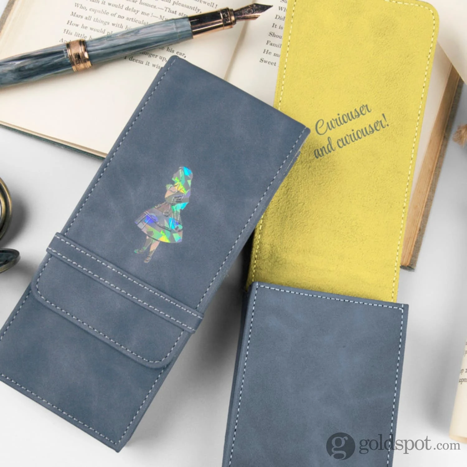 Introducing the Wearingeul 3 Pen Leather Pouch – “Alice in Wonderland” edition: a fusion of literary inspiration and exquisite craftsmanship. Crafted from premium pastel gray-blue leather and lined with light yellow suede, this pouch combines luxury with functionality. Safely store three fountain pens or other small items in its compact yet spacious interior. The points of “Alice in Wonderland” are delicately engraved on blue leather with holographic foil, capturing the whimsy of Lewis Carroll’s classic tale. The phrase “Curiouser and curiouser!” is silk-printed in yellow suede, adding a playful touch to the design. With eight captivating variations available, choose a pouch that reflects your unique style and appreciation for literature. Experience the artistry of Wearingeul and elevate your accessory game today!
